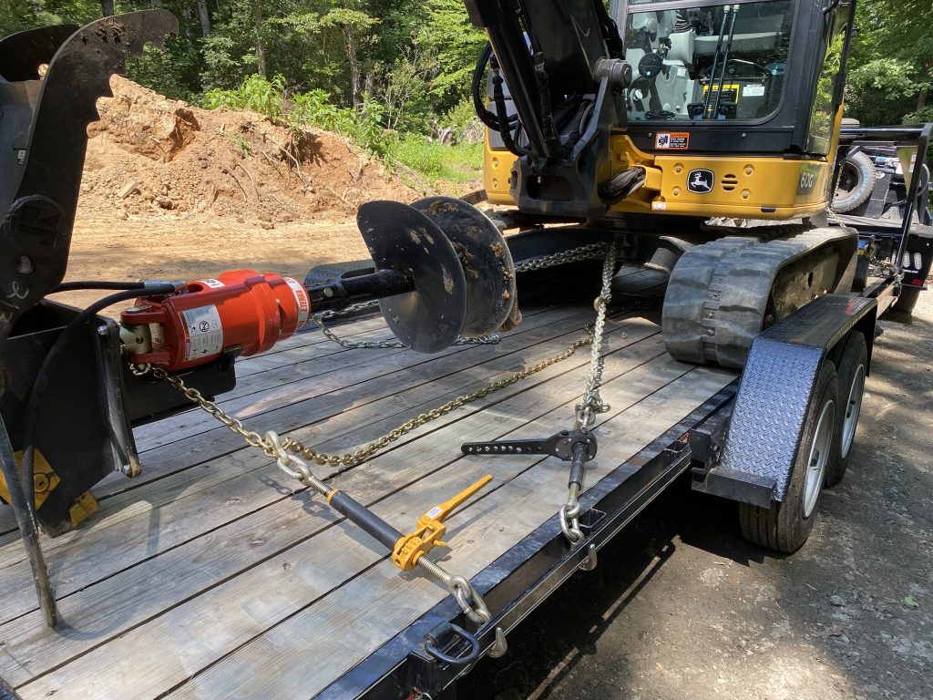 Auger Services Our auger can dig holes from 9″ in diameter to 48″ in diameter Since it is mounted on an excavator holes can be located in hard to reach locations/slopes Great for tree planting Pier footings
